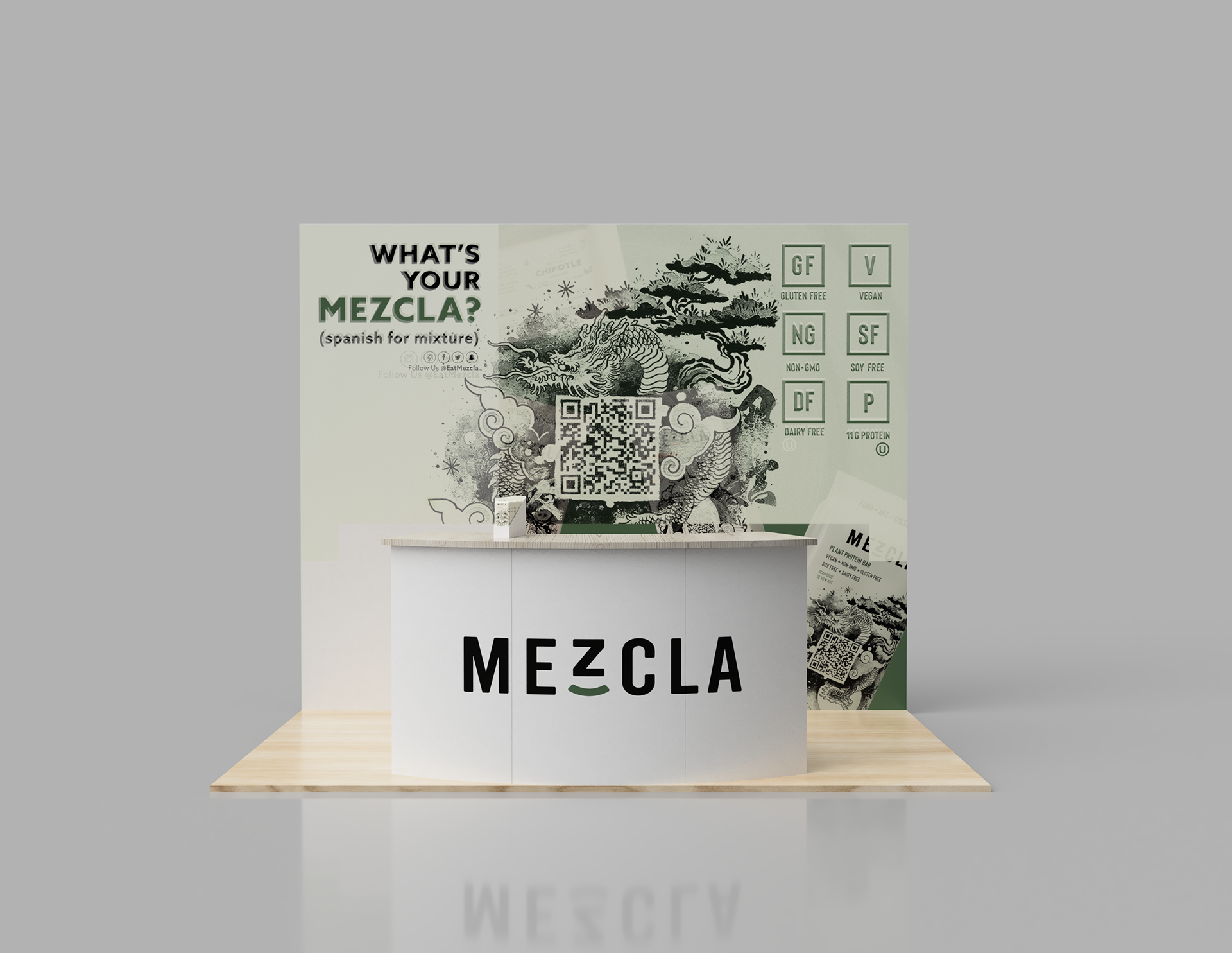 Brand building for Kickstarter brand Mezcla. 3D rendering and imagery for promotional/social media content. Tradeshow booth buildout with branded signage and custom retail structures.